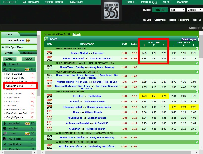 Bolasports365 – Jenis taruhan 1X2 adalah menebak menang , seri, ataupun kalah, dimana :