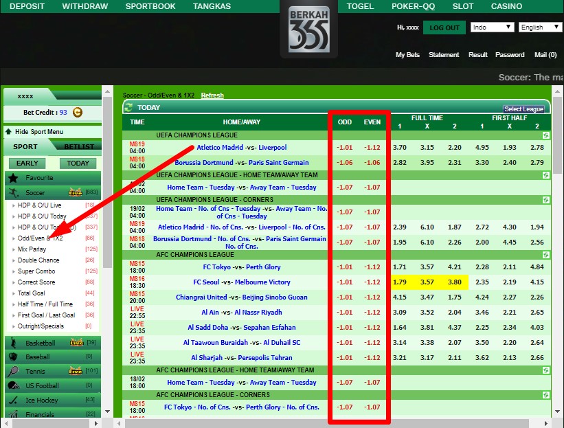 Anda ingin betting odd 100rb maka anda harus bayar 101rb di depan jika pertandingan tersebut mendapatkan total goal angka ganjil maka anda akan menang 100rb belum bersama modal.